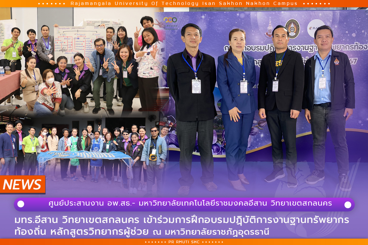 มทร.อีสาน วิทยาเขตสกลนคร นำโดย ผศ.น.สพ.ดร.ชเวง สารคล่อง รองอธฺการบดีประจำวิทยาเขตสกลนคร มอบหมายให้ ศุนย์บริการวิชาการ พร้อมด้วยคณาจารย์จากคณะอุตสาหกรรมและเทคโนโลยี ได้แก่ ผศ.สำเนียง ลุนพัฒน์ อาจารย์พุทธชาติ ทองโคตร อาจารย์รัก สกุลพงศ์ และอาจารย์พุฒิพัทธ์ ราชคำ เข้าร่วมฝึกอบรมปฏิบัติการงานฐานทรัพยากรท้องถิ่น หลักสูตรวิทยากรผู้ช่วย ณ มหาวิทยาลัยราชภัฏอุดรธานี ในระหว่างวันที่ 23-26 มกราคม 2567 โดยมีวัตถุประสงค์เพื่อให้ความรู้ ความเข้าใจ แนวทางการดำเนินงานตามนโยบาย ทิศทาง เป้าหมายของโครงการอนุรักษ์พันธุกรรมพืชฯ ให้แก่บุคลากรของหน่วยงานที่ร่วมสนองโครงการอนุรักษ์พันธุกรรมอันเนื่องมาจากพระราชดำริฯ(อพ.สธ.)