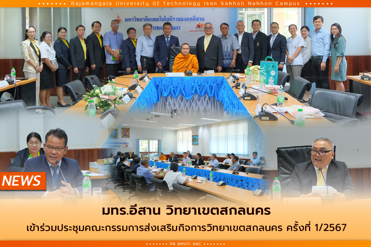 วันที่ 14 สิงหาคม 2567 มทร.อีสาน วิทยาเขตสกลนคร ประชุมคณะกรรมการส่งเสริมกิจการวิทยาเขตสกลนคร ครั้งที่ 1/2567 นำโดย ดร.ไพจิตร กุลตั้งวัฒนา ประธานกรรมการที่ประชุม พร้อมด้วย กรรมการผู้ทรงคุณวุฒิ พระครูวินัยธร ธรรมรินทร์ โภคากรณ์, นายชาญทนงค์ บุญรักษา, ดร.ชูพงศ์ คำจวง, นายธนวัฒน์ พลอยโสภณ, นายสุทธิพงษ์ สุริยะ, นายสมศักดิ์ นรัฐกิจ และพร้อมด้วยกรรมการ ผศ.น.สพ.ดร.ชเวง สารคล่อง รองอธิการบดีประจำวิทยาเขตสกลนคร, ผศ.ดร.พิเชษฐ เวชวิฐาน คณบดีคณะทรัพยากรธรรมชาติ, ผศ.ดร.สุริยา แก้วอาษา คณบดีคณะอุตสาหกรรมและเทคโนโลยี, นายภควัต นครินทร์สาคร ผู้อำนวยการสำนักงานวิทยาเขตสกลนคร, นายณรงค์ศักดิ์ มหาราต, นายรัฐทาน นามศิริ, นายกสโมสรนักศึกษาคณะทรัพยากรธรรมชาติ, นางสาวรุ่งนภา เหล่าสุวรรณ เลขานุการ, นางเพ็ญศรี ซัวมิเนน ผู้ช่วยเลขานุการ, เข้าร่วมประชุมในครั้งนี้ เพื่อส่งเสริม สนับสนุน ให้คำปรึกษาและข้อเสนอแนะแก่วิทยาเขต พัฒนาแนวทางการดำเนินงานของวิทยาเขต และส่งเสริมให้มีทุนการศึกษาแก่นักศึกษาที่ขาดแคลนทุนทรัพย์ ให้มีโอกาสในมหาวิทยาลัยอันเป็นการสนับสนุนความเสมอภาคกันในโอกาสทางการศึกษา