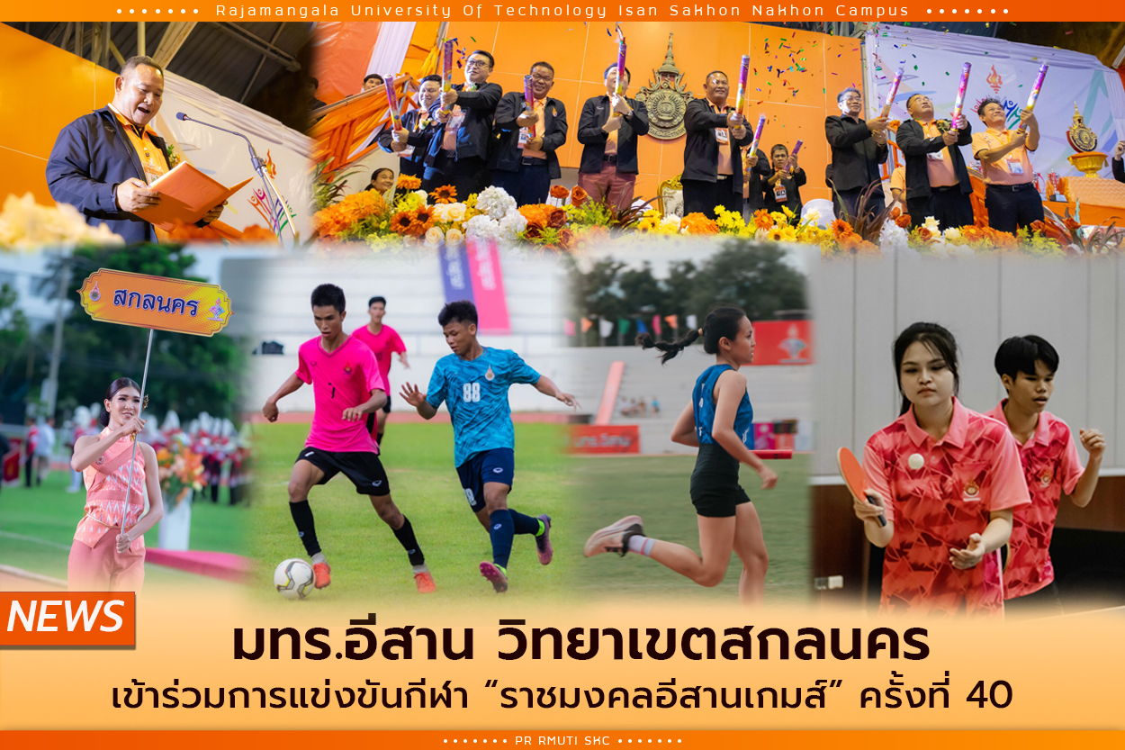 มทร.อีสาน วิทยาเขตสกลนคร นำโดย ผศ.น.สพ.ดร.ชเวง สารคล่อง รองอธิการบดีประจำวิทยาเขตสกลนคร พร้อมด้วยคณะผู้บริหาร คณาจารย์ อาจารย์ผู้ฝึกสอน ผู้ควบคุมทีม และนักศึกษา เข้าร่วมการแข่งขันกีฬา “ราชมงคลอีสานเกมส์” ครั้งที่ 40 ระหว่างวันที่ 27 – 30 สิงหาคม 2567 ณ มหาวิทยาลัยเทคโนโลยีราชมงคลอีสาน นครราชสีมา โดยมี รองศาสตราจารย์ ดร.โฆษิต ศรีภูธร อธิการบดีมหาวิทยาลัยเทคโนโลยีราชมงคลอีสาน เป็นประธานในพิธีเปิดการแข่งขันและกล่าวต้อนรับคณะผู้บริหาร นักศึกษา และแขกผู้มีเกียรติ ทั้งนี้ การแข่งขันกีฬา “ราชมงคลอีสานเกมส์” มีวัตถุประสงค์เพื่อส่งเสริมสุขภาพพลานามัย ของนักศึกษา สร้างเสริมความรัก ความสามัคคีในหมู่คณะ เชื่อมความสัมพันธ์ และสรรค์สร้างมิตรภาพอันดีงาม ความมีระเบียบวินัย ความมีน้ำใจเป็นนักกีฬา การเป็นแบบอย่างที่ดีแก่เยาวชนในการเป็นพลเมืองดีของประชาชาติ โดยมีชนิดกีฬาที่เข้าร่วมแข่งขัน จำนวนกว่า 14 ชนิดกีฬา