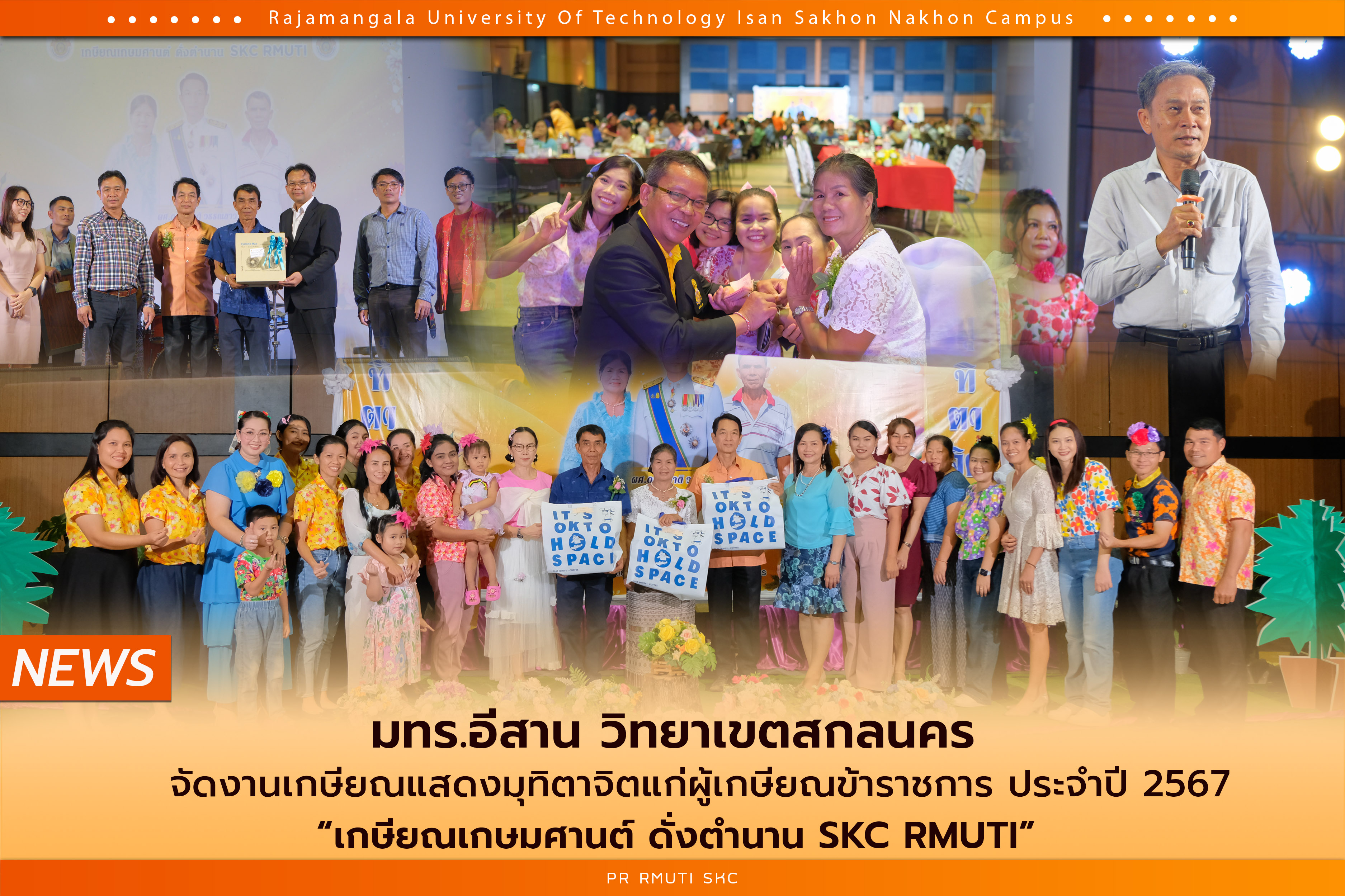 วันที่ 20 กันยายน 2567 มทร.อีสาน วิทยาเขตสกลนคร ได้จัดงานเกษียณอายุราชการเพื่อแสดงมุทิตาจิตแก่บุคลากรที่เกษียณอายุในปี 2567 ภายในงานได้มีโครงการสร้างเสริมคุณภาพชีวิตสำหรับบุคลากรทางการศึกษา เพื่อเชิดชูและส่งเสริมขวัญกำลังใจให้กับผู้เกษียณอายุราชการในครั้งนี้ โดยได้รับเกียรติจาก ผศ.น.สพ.ดร.ชเวง สารคล่อง รองอธิการบดีประจำวิทยาเขตสกลนคร เป็นประธานในพิธี พร้อมด้วย ผศ.ดร.พิเชษฐ เวชวิฐาน คณบดีคณะทรัพยากรธรรมชาติ และ ผศ.ดร.สุริยา แก้วอาษา คณบดีคณะอุตสาหกรรมและเทคโนโลยี รวมทั้งผู้บริหาร คณาจารย์ และบุคลากร เข้าร่วมงานอย่างคับคั่ง เพื่อร่วมแสดงความขอบคุณและแสดงมุทิตาจิตแก่ผู้เกษียณอายุราชการในปีนี้ โดยในปี 2567 มีผู้เกษียณอายุราชการทั้ง 3 ท่าน ได้แก่ ผศ. ดร.สุชาติ วรรณขาว, คุณจันทร์ไทย เปรมปรี, และคุณธงชัย ศรีงาม ภายในงานมีพิธีบายศรีสู่ขวัญและมอบของที่ระลึก เป็นบรรยากาศที่อบอุ่นและเต็มไปด้วยความรักและความปรารถนาดีจากผู้ร่วมงานทุกคน เพื่อเป็นการแสดงความขอบคุณต่อผู้ที่มีความรู้ความสามารถและประสบการณ์ที่ได้ทุ่มเทให้แก่มหาวิทยาลัยตลอดระยะเวลาการทำงาน ทั้งนี้ยังเป็นการเสริมสร้างขวัญกำลังใจและพลังในการสร้างสรรค์คุณประโยชน์แก่สังคมต่อไปในอนาคต ณ ห้องประชุมราชมงคล อาคารเรียนรวม มทร.อีสาน วิทยาเขตสกลนคร
