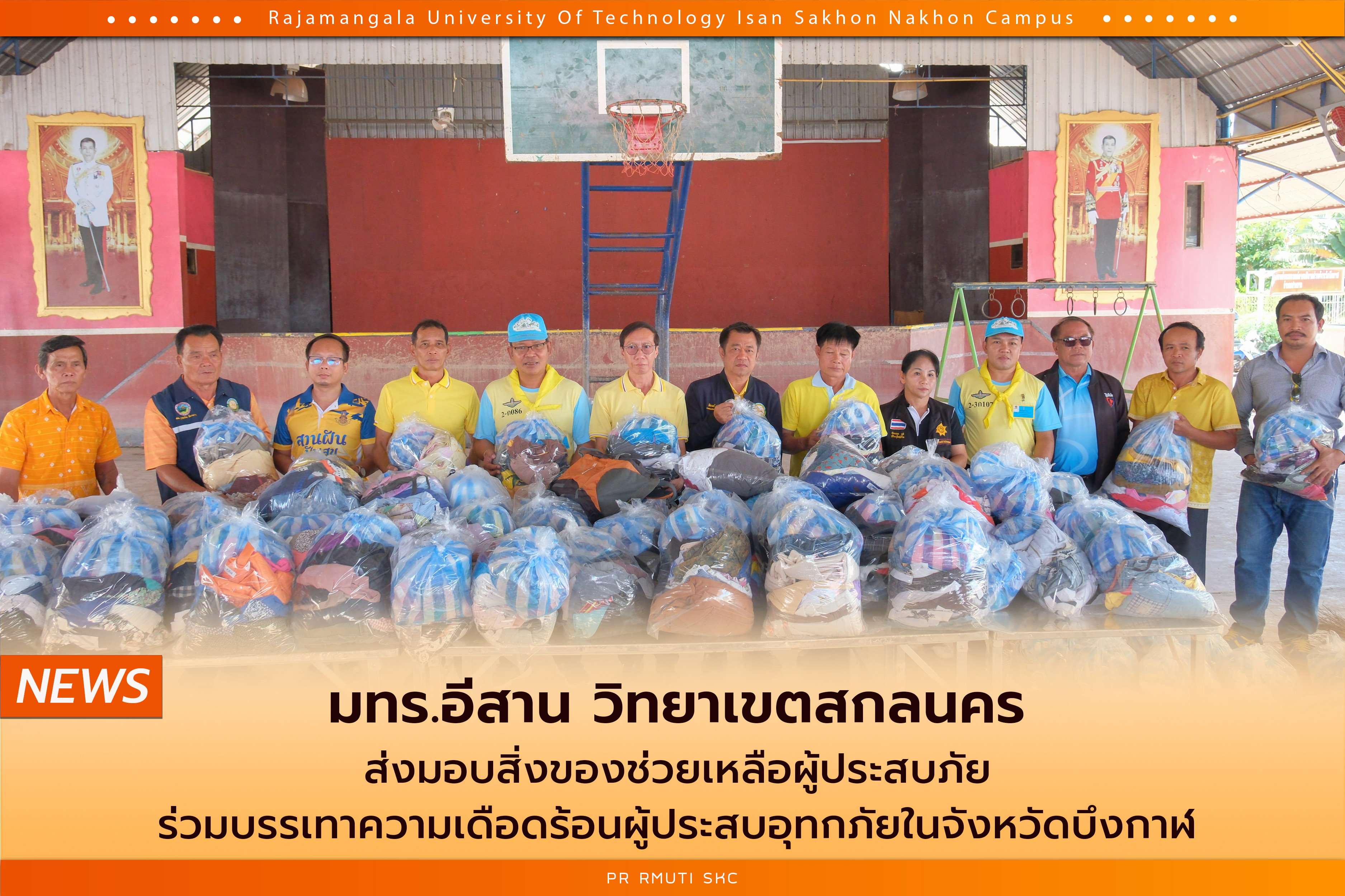 มหาวิทยาลัยเทคโนโลยีราชมงคลอีสาน วิทยาเขตสกลนคร นำโดย ผศ.น.สพ.ดร.ชเวง สารคล่อง รองอธิการบดีประจำวิทยาเขตสกลนคร พร้อมด้วยผู้บริหารและบุคลากรของมหาวิทยาลัย ได้ดำเนินการตามนโยบายของ รศ.ดร.โฆษิต ศรีภูธร อธิการบดี มทร.อีสาน ในการช่วยเหลือและบรรเทาความเดือดร้อนของประชาชนที่ได้รับผลกระทบจากเหตุการณ์อุทกภัยในพื้นที่จังหวัดบึงกาฬ โดยในระหว่างวันที่ 16-20 กันยายน 2567 มทร.อีสาน วิทยาเขตสกลนคร ได้เปิดศูนย์ประสานงานเพื่อรับบริจาคสิ่งของต่างๆ อาทิ น้ำดื่ม ยาสามัญประจำบ้าน ข้าวสารอาหารแห้ง เสื้อผ้า และอื่นๆ ซึ่งได้รับการสนับสนุนจากทั้งบุคลากรภายในมหาวิทยาลัยและประชาชนทั่วไป ในวันที่ 26 กันยายน 2567 มทร.อีสาน วิทยาเขตสกลนคร ได้นำสิ่งของบริจาคทั้งหมดเดินทางไปยังอำเภอปากคาด จังหวัดบึงกาฬ ซึ่งประกอบไปด้วยน้ำดื่มจำนวน 100 แพ็ค เสื้อผ้าและอาหารแห้งอีก 100 ชุด และอื่นๆ เพื่อนำไปแจกจ่ายให้กับผู้ประสบอุทกภัยในพื้นที่ เพื่อบรรเทาความเดือดร้อนในเบื้องต้นและเป็นกำลังใจให้กับประชาชนที่ได้รับผลกระทบ การดำเนินการครั้งนี้เป็นส่วนหนึ่งของความมุ่งมั่นของ มทร.อีสาน ในการมีบทบาทสำคัญในการช่วยเหลือสังคมในช่วงเวลาที่เกิดภัยพิบัติทางธรรมชาติ