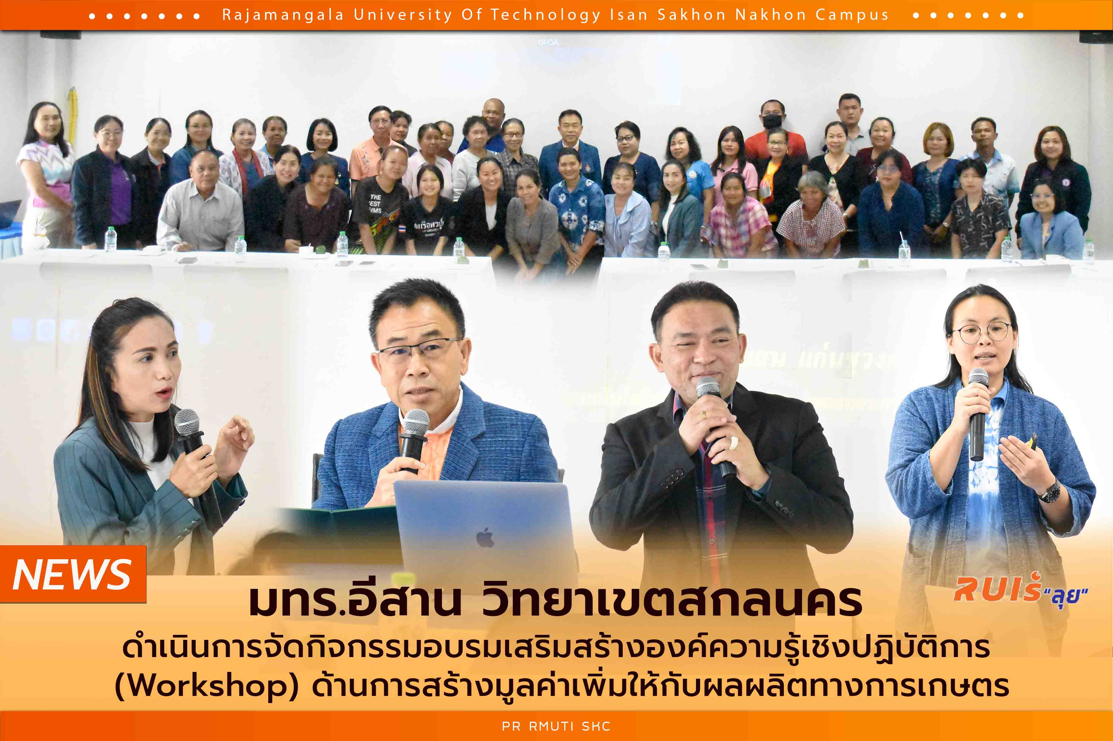 มทร.อีสาน วิทยาเขตสกลนคร นำโดย ผศ.น.สพ.ดร.ชเวง สารคล่อง รองอธิการบดีประจำวิทยาเขตสกลนคร ได้ดำเนินการจัด "กิจกรรมอบรมเสริมสร้างองค์ความรู้เชิงปฏิบัติการ (Workshop) ด้านการสร้างมูลค่าเพิ่มให้กับผลผลิตทางการเกษตร" โดยมี ผศ.อัมพร ภูศรีฐาน ผู้ช่วยอธิการบดีฯ ซึ่งจัดขึ้นระหว่างวันที่ 17-18 เมษายน 2568 ณ ห้องประชุมค้ำคูณ 7 อาคารวิจัยและพัฒนา ชั้น 2 มทร.อีสาน วิทยาเขตสกลนคร การจัดอบรมครั้งนี้ เป็นส่วนหนึ่งของโครงการ "ยกระดับผลิตภัณฑ์สินค้าการเกษตรอุตสาหกรรมสู่ธุรกิจตลาดสมัยใหม่ Z(OPOAI-C NEXT Steps)" ที่มุ่งเน้นการถ่ายทอดองค์ความรู้และเทคโนโลยีสมัยใหม่ เพื่อยกระดับศักยภาพของกลุ่มเกษตรกร วิสาหกิจชุมชน และผู้ประกอบการเกษตรแปรรูป ให้สามารถเพิ่มมูลค่าให้กับผลผลิตของตนเองได้อย่างมีประสิทธิภาพและยั่งยืน โดยตลอดระยะเวลา 2 วันของการอบรมนี้ ผู้เข้าร่วมจะได้รับความรู้ทั้งภาคทฤษฎีและภาคปฏิบัติอาทิ การประยุกต์ใช้นวัตกรรม เทคโนโลยี หรือองค์ความรู้จากงานวิจัยเพื่อพัฒนาผลิตภัณฑ์ การสร้างบรรจุภัณฑ์ การวางแผนธุรกิจ การบริหารจัดการ และการตลาดยุคใหม่ ตลอดจนการสร้างจิตวิญญาณความเป็นผู้ประกอบการ เพื่อก้าวสู่การเป็นนักธุรกิจเกษตรที่มีความพร้อมแข่งขันในตลาดได้อย่างมั่นคง