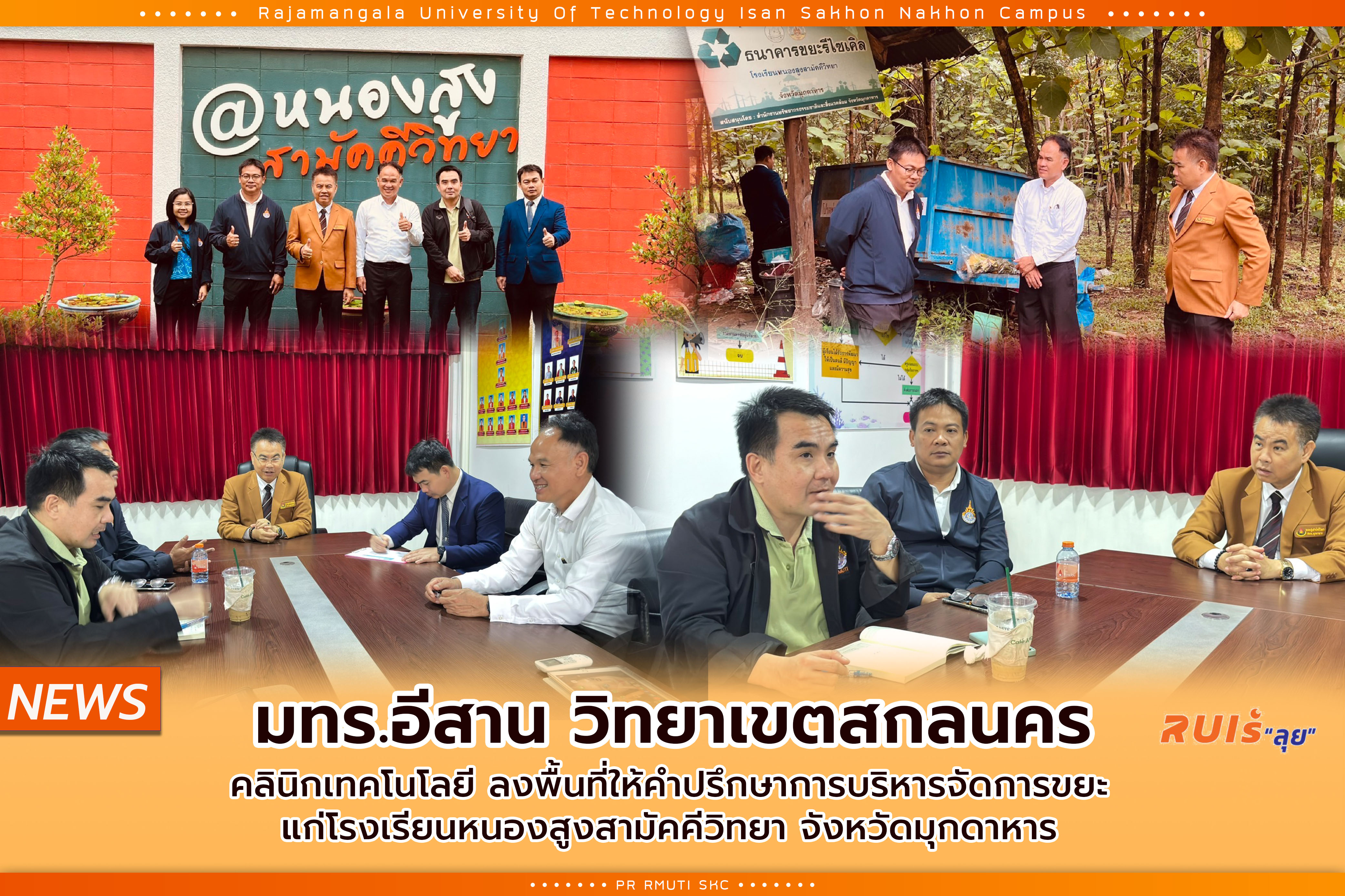คลินิกเทคโนโลยี มทร.อีสาน วิทยาเขตสกลนคร ลงพื้นที่ให้คำปรึกษาการบริหารจัดการขยะแก่โรงเรียนหนองสูงสามัคคีวิทยา จังหวัดมุกดาหาร เมื่อวันที่ 9 กรกฎาคม 2568 คลินิกเทคโนโลยี มหาวิทยาลัยเทคโนโลยีราชมงคลอีสาน วิทยาเขตสกลนคร ได้ลงพื้นที่ให้บริการคำปรึกษาทางด้านเทคโนโลยีแก่ โรงเรียนหนองสูงสามัคคีวิทยา อำเภอหนองสูง จังหวัดมุกดาหาร โดยมีทีมผู้เชี่ยวชาญนำโดย ผู้ช่วยศาสตราจารย์ ดร.นำพน พิพัฒน์ไพบูลย์ และ ผู้ช่วยศาสตราจารย์ ดร.สุรเชษฐ์ สีชำนาญ การลงพื้นที่ในครั้งนี้จัดขึ้นภายใต้ภารกิจของคลินิกเทคโนโลยีในการส่งเสริมและสนับสนุนการพัฒนาชุมชนด้วยองค์ความรู้และนวัตกรรมทางเทคโนโลยี โดยโรงเรียนหนองสูงสามัคคีวิทยาได้แสดงความต้องการในการพัฒนาระบบบริหารจัดการขยะอย่างยั่งยืน เพื่อมุ่งสู่การเป็น “โรงเรียนต้นแบบด้านสิ่งแวดล้อม” หรือ Eco School หนึ่งในหัวข้อสำคัญที่โรงเรียนต้องการความช่วยเหลือ คือการออกแบบและพัฒนา เตาเผาขยะที่มีประสิทธิภาพสูง ซึ่งสามารถเผาขยะได้อย่างสมบูรณ์ และสามารถ ผลิตน้ำมันเชื้อเพลิงจากขยะพลาสติก (Pyrolysis) เพื่อใช้ประโยชน์ในโรงเรียนได้อย่างเป็นรูปธรรม การดำเนินการในครั้งนี้ไม่เพียงตอบโจทย์ด้านการจัดการปัญหาขยะภายในโรงเรียนเท่านั้น แต่ยังเป็นการส่งเสริมการเรียนรู้แบบบูรณาการให้กับนักเรียน ผ่านกระบวนการเรียนรู้ด้านวิทยาศาสตร์ เทคโนโลยี และสิ่งแวดล้อม อันจะช่วยปลูกฝังจิตสำนึกในการอนุรักษ์ทรัพยากรธรรมชาติ และสร้างแรงบันดาลใจในการคิดค้นนวัตกรรมเพื่อชุมชนอย่างยั่งยืน ทั้งนี้ ทีมผู้เชี่ยวชาญจากคลินิกเทคโนโลยี มทร.อีสาน วิทยาเขตสกลนคร จะดำเนินการให้คำแนะนำ ออกแบบเตาเผา รวมถึงวางแผนการนำไปใช้ให้เหมาะสมกับบริบทของโรงเรียนและชุมชนต่อไป