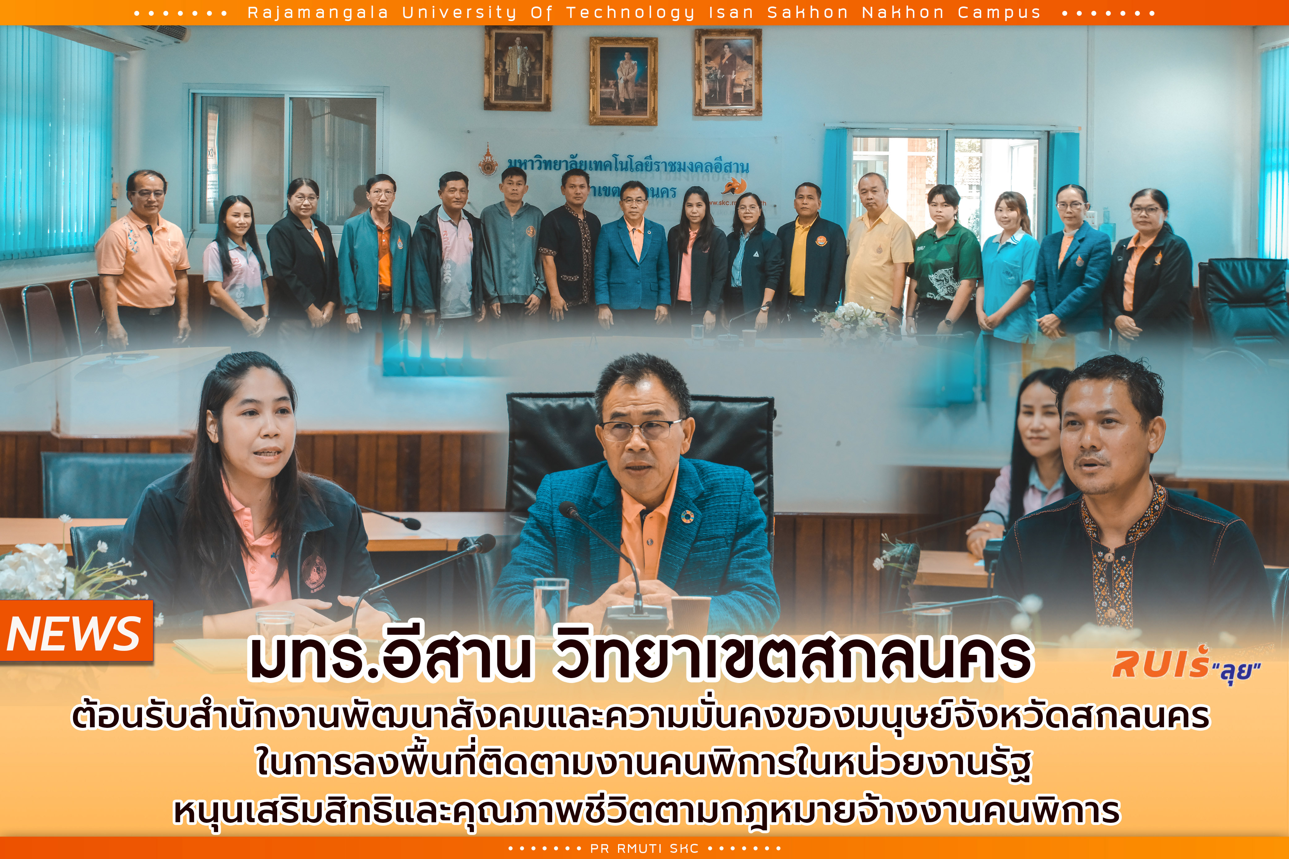 24 กรกฎาคม 2568 มทร.อีสาน วิทยาเขตสกลนคร นำโดย ผศ.อัมพร ภูศรีฐาน ผู้ช่วยอธิการบดีประจำวิทยาเขตสกลนคร พร้อมด้วยคณะผู้บริหาร และเจ้าหน้าที่ ในการต้อนรับสำนักงานพัฒนาสังคมและความมั่นคงของมนุษย์จังหวัดสกลนคร เพื่อลงพื้นที่ติดตามงานคนพิการในหน่วยงานรัฐ หนุนเสริมสิทธิและคุณภาพชีวิตตามกฎหมายจ้างงานคนพิการ ภายใต้โครงการส่งเสริมให้รัฐและเอกชนปฏิบัติตามกฎหมายการจ้างงานคนพิการ ประจำปีงบประมาณ พ.ศ. 2568 โดยมีวัตถุประสงค์เพื่อสร้างความรู้ ความเข้าใจ และแนวทางการปฏิบัติตามพระราชบัญญัติส่งเสริมและพัฒนาคุณภาพชีวิตคนพิการ พ.ศ. 2550 และที่แก้ไขเพิ่มเติม (ฉบับที่ 2) พ.ศ. 2556 แก่สถานประกอบการและหน่วยงานภาครัฐในพื้นที่จังหวัดสกลนคร รวมถึงติดตามผลการดำเนินงานด้านการจ้างงานคนพิการ เพื่อรับทราบปัญหา อุปสรรค ความต้องการ และข้อเสนอแนะที่เกี่ยวข้องกับการทำงานของคนพิการในสถานที่ราชการ ณ ห้องประชุมค้ำคูน 2 อาคารวิจัยและพัฒนาชั้น 1