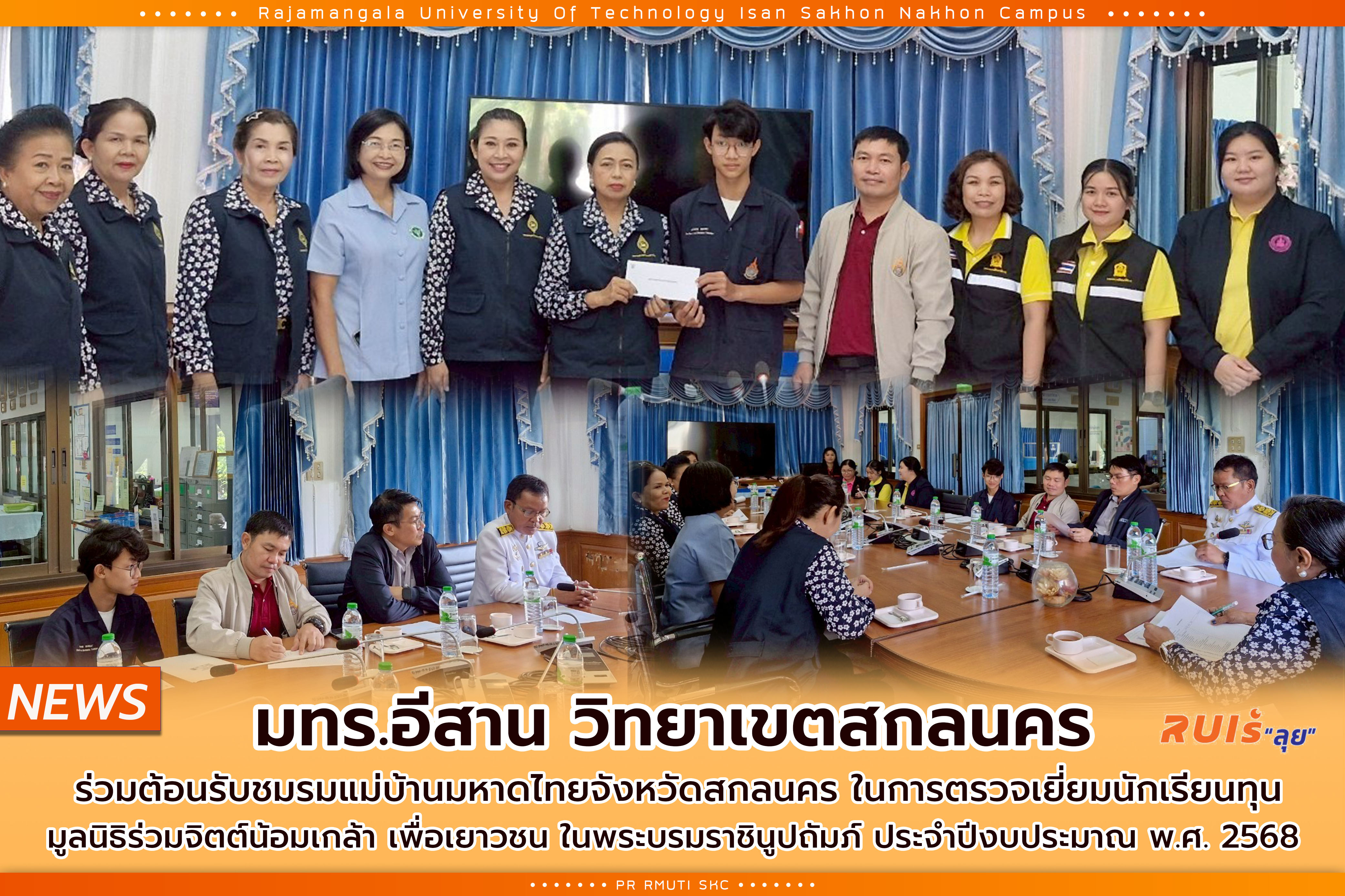 วันที่ 29 กรกฎาคม 2568 มทร.อีสาน วิทยาเขตสกลนคร นำโดย ผศ.น.สพ.ดร.ชเวง สารคล่อง รองอธิการบดีประจำวิทยาเขตสกลนคร พร้อมด้วยคณะผู้บริหาร คณาจารย์ และเจ้าหน้าที่ ได้ให้การต้อนรับ ชมรมแม่บ้านมหาดไทยจังหวัดสกลนคร ,ศึกษาธิการจังหวัดสกลนคร,สาธารณสุขจังหวัดสกลนคร และสำนักงานพัฒนาสังคมและความมั่นคงของมนุษย์จังหวัดสกลนคร ในการตรวจเยี่ยมนักเรียนทุนมูลนิธิร่วมจิตต์น้อมเกล้า เพื่อเยาวชน ในพระบรมราชินูปถัมภ์ ประจำปีงบประมาณ พ.ศ. 2568 ในครั้งนี้ นักศึกษาที่ได้รับทุน คือ นายณัฐพล นัยเนตร นักศึกษา ระดับ ปวช. ชั้นปีที่ 2 สาขาช่างยนต์ ได้รับการตรวจเยี่ยมและให้กำลังใจจากคณะผู้เยี่ยมชม พร้อมทั้งมีการพูดคุยแลกเปลี่ยนความคิดเห็นและแสดงความชื่นชมในความมุ่งมั่นของนักศึกษาในการพัฒนาตนเองด้านการศึกษา การตรวจเยี่ยมในครั้งนี้สะท้อนถึงความร่วมมือและการสนับสนุนจากหน่วยงานต่าง ๆ ในการส่งเสริมโอกาสทางการศึกษาให้แก่นักเรียนทุนมูลนิธิร่วมจิตต์น้อมเกล้าฯ เพื่อการพัฒนาคุณภาพชีวิตและการศึกษาของเยาวชนไทยให้ก้าวหน้าในอนาคต ณ ห้องประชุมค้ำคูณ 1 อาคารสำนักงานวิทยาเขตสกลนคร มหาวิทยาลัยเทคโนโลยีราชมงคลอีสาน วิทยาเขตสกลนคร