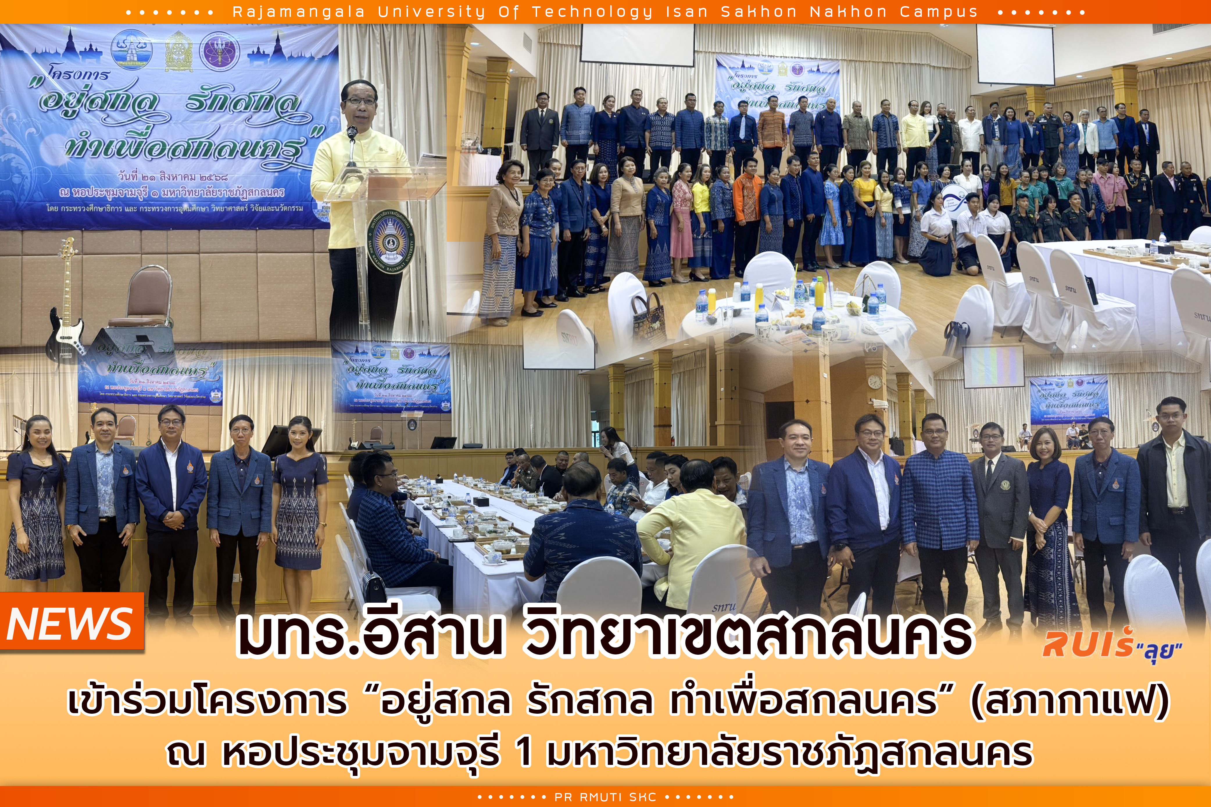 วันที่ 21 สิงหาคม 2568 มทร.อีสาน วิทยาเขตสกลนคร นำโดย ผู้ช่วยศาสตราจารย์ น.สพ.ดร.ชเวง สารคล่อง รองอธิการบดีประจำวิทยาเขตสกลนคร มอบหมายให้ ผู้ช่วยศาสตราจารย์ ดร.นำพน พิพัฒน์ไพบูลย์ ผู้ช่วยอธิการบดีประจำวิทยาเขตสกลนคร คณะผู้บริหารและเจ้าหน้าที่ เข้าร่วมโครงการ “อยู่สกล รักสกล ทำเพื่อสกลนคร” (สภากาแฟ) โดยกระทรวงการอุดมศึกษา วิทยาศาสตร์ วิจัยและนวัตกรรม และ 3 มหาวิทยาลัยหลักในพื้นที่ ได้แก่ มทร.อีสาน วิทยาเขตสกลนคร มหาวิทยาลัยราชภัฏสกลนคร มหาวิทยาลัยเกษตรศาสตร์ วิทยาเขตเฉลิมพระเกียรติ จังหวัดสกลนคร และกระทรวงศึกษาธิการ 9 หน่วยงานในจังหวัดสกลนคร ร่วมเป็นเจ้าภาพจัดโครงการในครั้งนี้ โดยได้รับเกียรติจากนายชูศักดิ์ รู้ยิ่ง ผู้ว่าราชการจังหวัดสกลนคร เป็นประธานในการเปิดงาน พร้อมด้วยหน่วยงานราชการต่างๆ ภาคเอกชน สมาคม องค์กรการกุศล และมูลนิธิในพื้นที่เข้าร่วม โดยมีเป้าหมายในการพบปะพูดคุยเพื่อรับฟังความคิดเห็น ข้อเสนอแนะ แนวทางการพัฒนาจังหวัด และร่วมกันหาแนวทางแก้ไขปัญหาต่างๆ ที่เกี่ยวข้อง ณ หอประชุมจามจุรี 1 มหาวิทยาลัยราชภัฏสกลนคร อำเภอเมืองสกลนคร จังหวัดสกลนคร
