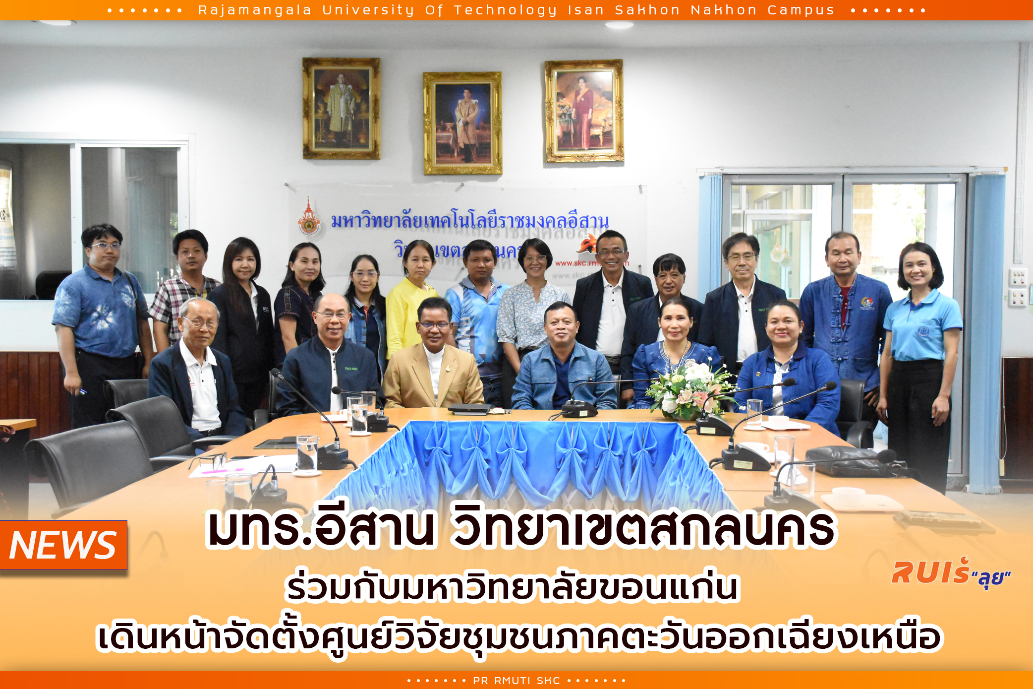 วันที่ 3 ตุลาคม 2568 มทร.อีสาน วิทยาเขตสกลนคร นำโดย ผู้ช่วยศาสตราจารย์ น.สพ.ดร.ชเวง สารคล่อง รองอธิการบดีประจำวิทยาเขตสกลนคร ผู้บริหาร และคณาจารย์ เข้าร่วมประชุมความร่วมมือการจัดตั้งศูนย์วิจัยชุมชน โดย ศาสตราจารย์ไชยยงค์ นาวานุเคราะห์ หัวหน้าโครงการและรองประธานเครือข่ายวิจัยภูมิภาค ในโครงการ "การบริหารเครือข่ายวิจัยภูมิภาค : ภาคตะวันออกเฉียงเหนือ" แก่คณะเกษตรศาสตร์ มหาวิทยาลัยขอนแก่น โดยได้รับการสนับสนุนจากสำนักงานการวิจัยแห่งชาติ (วช.) ประจำปีงบประมาณ 2568 มีเป้าหมายเพื่อการบริหารจัดการและขับเคลื่อนเครือข่ายวิจัยภูมิภาคให้เข้มแข็งและมีประสิทธิภาพ ส่งเสริมการนำองค์ความรู้จากงานวิจัยไปพัฒนาท้องถิ่น ชุมชน และสังคม ให้เกิดการพัฒนาอย่างยั่งยืนและเป็นรูปธรรม ณ ห้องประชุมค้ำคูณ 2 อาคารวิจัยและพัฒนา ชั้น 1 สํานักงานวิทยาเขตสกลนคร