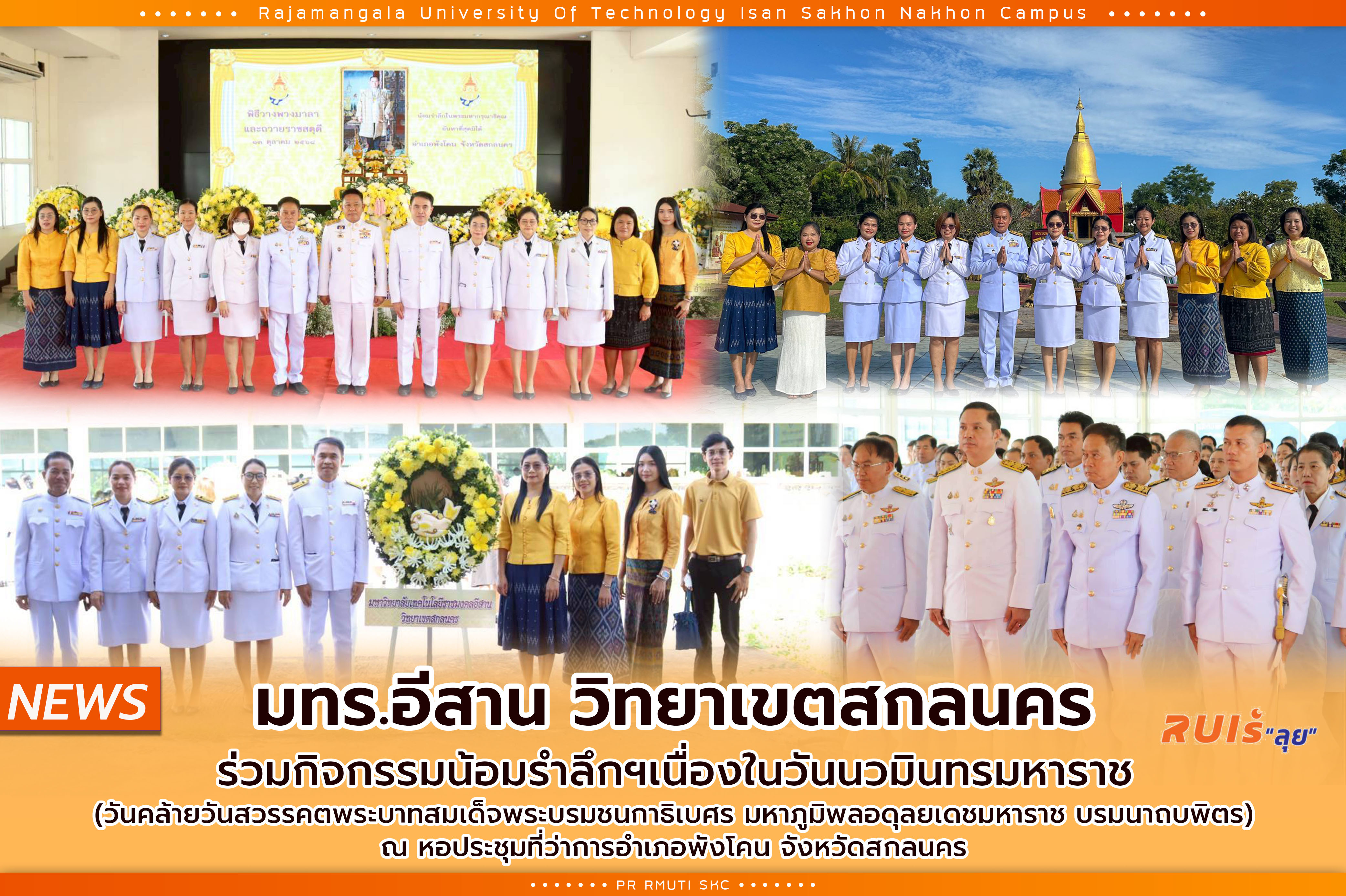 วันที่ 13 ตุลาคม 2568 คณะผู้บริหาร คณาจารย์ บุคลากร มทร.อีสาน วิทยาเขตสกลนคร นำโดย ผศ.น.สพ.ดร.ชเวง สารคล่อง รองอธิการบดีประจำวิทยาเขตสกลนคร ได้มอบหมายให้ ผศ.ดร.พิเชษฐ เวชวิฐาน คณบดีคณะทรัพยากรธรรมชาติ ร่วมกิจกรรมน้อมรำลึกฯเนื่องในวันนวมินทรมหาราช (วันคล้ายวันสวรรคตพระบาทสมเด็จพระบรมชนกาธิเบศร มหาภูมิพลอดุลยเดชมหาราช บรมนาถบพิตร) โดยได้มีพิธีทำบุญตักบาตรถวายพระราชกุศล ณ วัดศรีจำปาชนบท และพิธีวางพวงมาลา เพื่อน้อมรำลึกในพระมหากรุณาธิคุณ เนื่องในโอกาสวันนวมินทรมหาราช (วันคล้ายวันสวรรคตพระบาทสมเด็จพระบรมชนกาธิเบศร มหาภูมิพลอดุลยเดชมหาราช บรมนาถบพิตร) ณ หอประชุมที่ว่าการอำเภอพังโคน จังหวัดสกลนคร