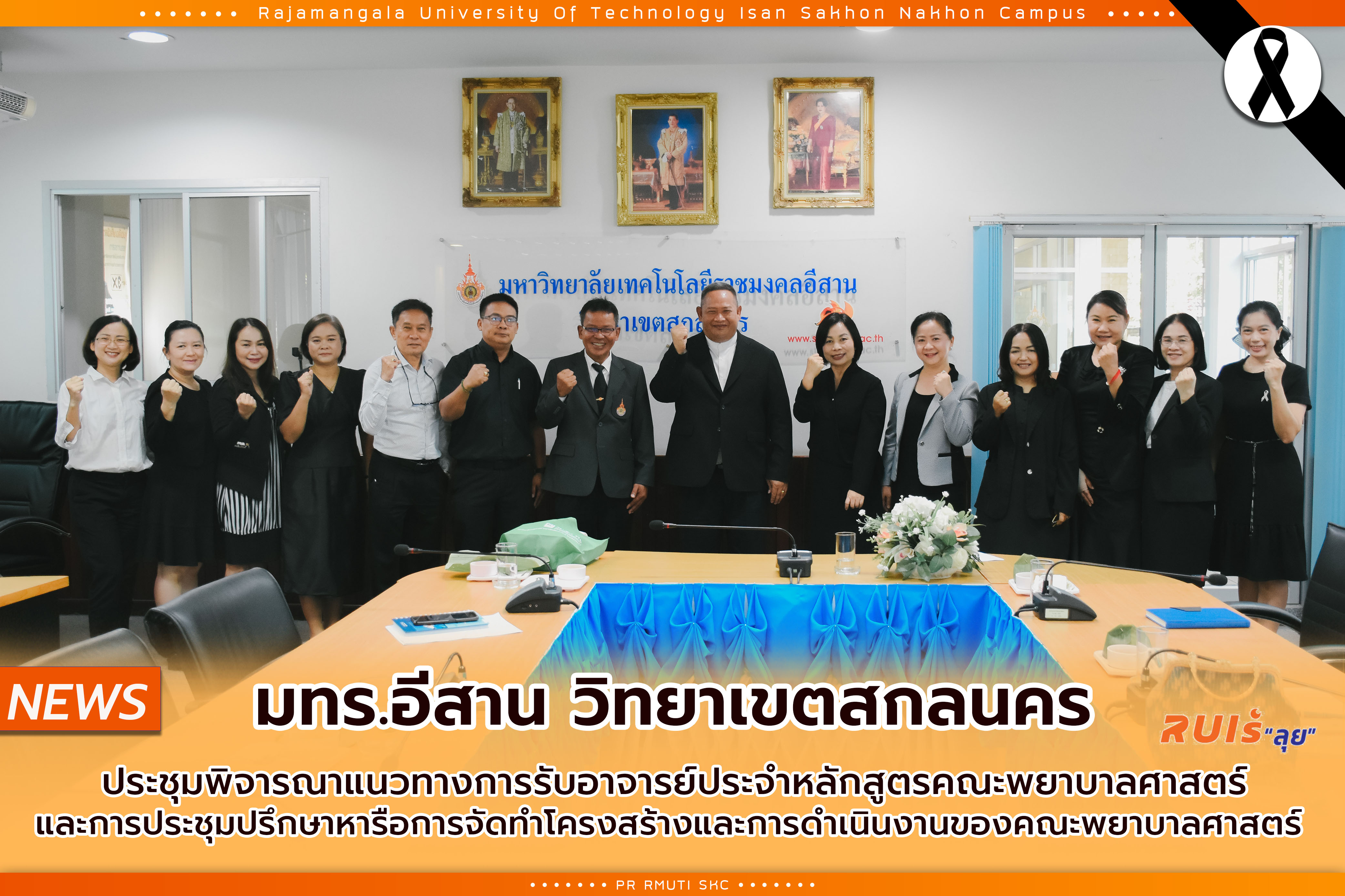 วันที่ 27 ตุลาคม 2568 มทร.อีสาน วิทยาเขตสกลนคร นำโดย รศ.ดร.โฆษิต ศรีภูธร รักษาราชการแทนอธิการบดีมหาวิทยาลัยเทคโนโลยีราชมงคลอีสาน พร้อมด้วย รองอธิการบดีฯ คณบดี คณะผู้บริหาร คณาจารย์และบุคลากร ร่วมประชุมพิจารณาแนวทางการรับอาจารย์ประจำหลักสูตรคณะพยาบาลศาสตร์และการประชุมปรึกษาหารือการจัดทำโครงสร้างและการดำเนินงานของคณะพยาบาลศาสตร์ ด้วยมหาวิทยาลัยเทคโนโลยีราชมงคลอีสาน วิทยาเขตสกลนคร ได้ดำเนินการจัดทำหลักสูตร คณะพยาบาลศาสตร์ เพื่อให้การบริหารจัดการด้านหลักสูตรให้เป็นไปตามระเบียบและข้อบังคับของมหาวิทยาลัยฯ ได้มีกำหนดจัดประชุมพิจารณาแนวทางการรับอาจารย์ประจำหลักสูตรคณะพยาบาลศาสตร์ และประชุมปรึกษาหารือการจัดทำโครงสร้างและการดำเนินงานของคณะพยาบาลศาสตร์ ณ ห้องประชุมค้ำคูณ 2 อาคารวิจัยและพัฒนา ชั้น 1 มทร.อีสาน วิทยาเขตสกลนคร