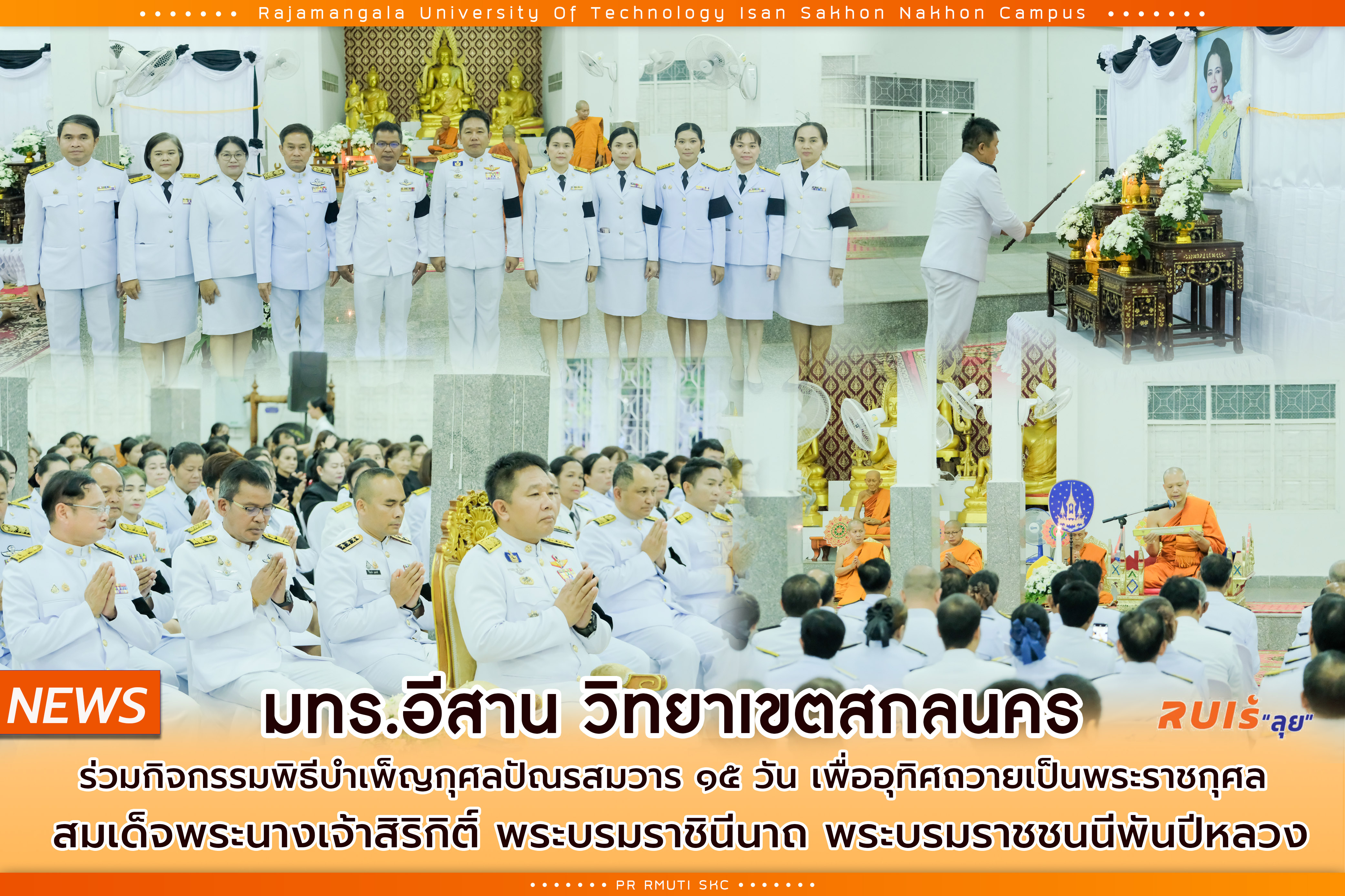 7 พฤศจิกายน 2568 มทร.อีสาน วิทยาเขตสกลนคร นำโดย ผศ.น.สพ.ดร.ชเวง สารคล่อง รองอธิการบดีประจำวิทยาเขตสกลนคร พร้อมด้วยผู้บริหาร คณาจารย์ และเจ้าหน้าที่ ร่วมกิจกรรมพิธีบำเพ็ญกุศลปัณรสมวาร ๑๕ วัน เพื่ออุทิศถวายเป็น พระราชกุศลสมเด็จพระนางเจ้าสิริกิติ์ พระบรมราชินีนาถ พระบรมราชชนนีพันปีหลวง โดย นายวิชาญ ดาทุมมา นายอำเภอพังโคน เป็นประธานฝ่ายฆราวาส เพื่อแสดงถึงความจงรักภักดีและน้อมสำนึกในพระมหากรุณาธิคุณของสมเด็จพระนางเจ้าสิริกิติ์ พระบรมราชชนนีพันปีหลวง ณ วัดศรีจำปาชนบท ตำบลพังโคน อำเภอพังโคน จังหวัดสกลนคร โดยมี หัวหน้าส่วนราชการ ข้าราชการ ทหาร ตำรวจ ผู้บริหารสถานศึกษา ผู้บริหารองค์กรปกครองส่วนท้องถิ่น กำนัน ผู้ใหญ่บ้าน ฯลฯ กลุ่มพลังมวลชน ทุกหมู่เหล่า และพสกนิกรชาวอำเภอพังโคนร่วมพิธีอย่างพร้อมเพรียง แสดงให้เห็นถึงความจงรักภักดี ความสามัคคี และความสำนึกในพระมหากรุณาธิคุณอันล้นพ้นของประชาชนชาวอำเภอพังโคน