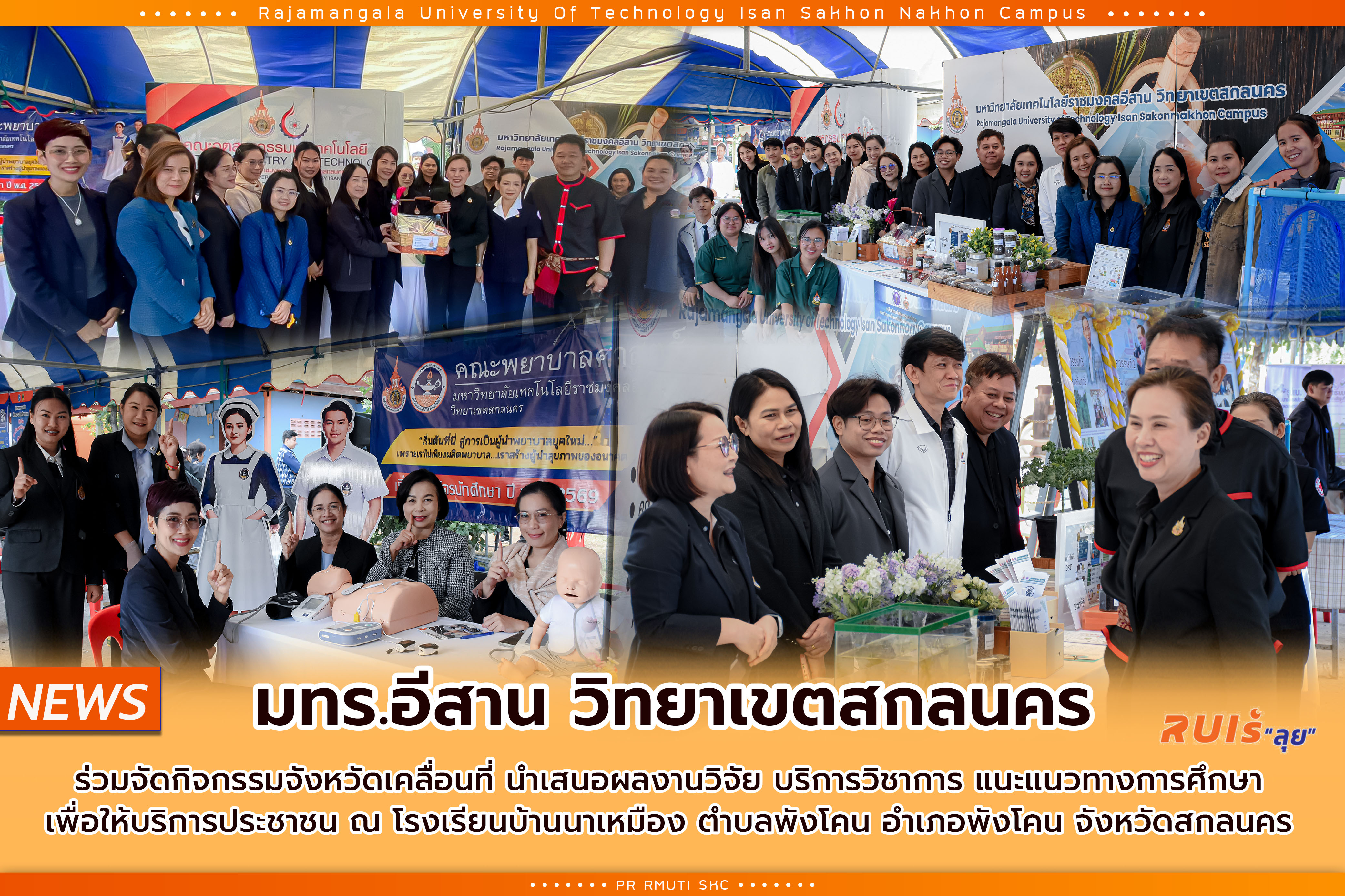 คลินิกเทคโนโลยี มหาวิทยาลัยเทคโนโลยีราชมงคลอีสาน วิทยาเขตสกลนคร นำโดย ผู้ช่วยศาสตราจารย์ น.สพ.ดร.ชเวง สารคล่อง รองอธิการบดีประจำวิทยาเขตสกลนคร พร้อมด้วยผู้บริหาร คณาจารย์ และเจ้าหน้าที่ เข้าร่วมจัดกิจกรรมจังหวัดเคลื่อนที่ เพื่อให้บริการประชาชน ร่วมกับจังหวัดสกลนคร ลงพื้นที่ให้บริการประชาชนในพื้นที่ห่างไกล เพื่ออำนวยความสะดวกในการติดต่อราชการ ลดภาระค่าใช้จ่ายการเดินทาง และรับฟังปัญหาความเดือดร้อนของประชาชน เพื่อร่วมกันหาแนวทางแก้ไข ณ โรงเรียนบ้านนาเหมือง หมู่ที่ 10 ตำบลพังโคน อำเภอพังโคน จังหวัดสกลนคร มทร.อีสาน วิทยาเขตสกลนคร ร่วมต้อนรับ นางรณิดา เหลืองฐิติสกุล ผู้ว่าราชการจังหวัดสกลนคร เป็นประธานเปิดโครงการจังหวัดเคลื่อนที่ นอกจากนี้ยังได้นำเสนอผลงานวิจัย และบริการวิชาการ เพื่อช่วยเหลือ และแก้ปัญหา ให้กับชาวจังหวัดสกลนคร โดยนำผลงาน หนอนแมลงโปรตีน BSF ที่สามารถลดต้นทุนอาหารสัตว์ได้ถึง 70% เครื่องดำนาโยน ต้นทุนต่ำประสิทธิภาพสูงและการประชาสัมพันธ์การเรียนการสอน คณะพยาบาลศาสตร์ โดยทำการเปิดสอนที่ มทร.อีสาน วิทยาเขตสกลนคร ในปีการศึกษา 2569