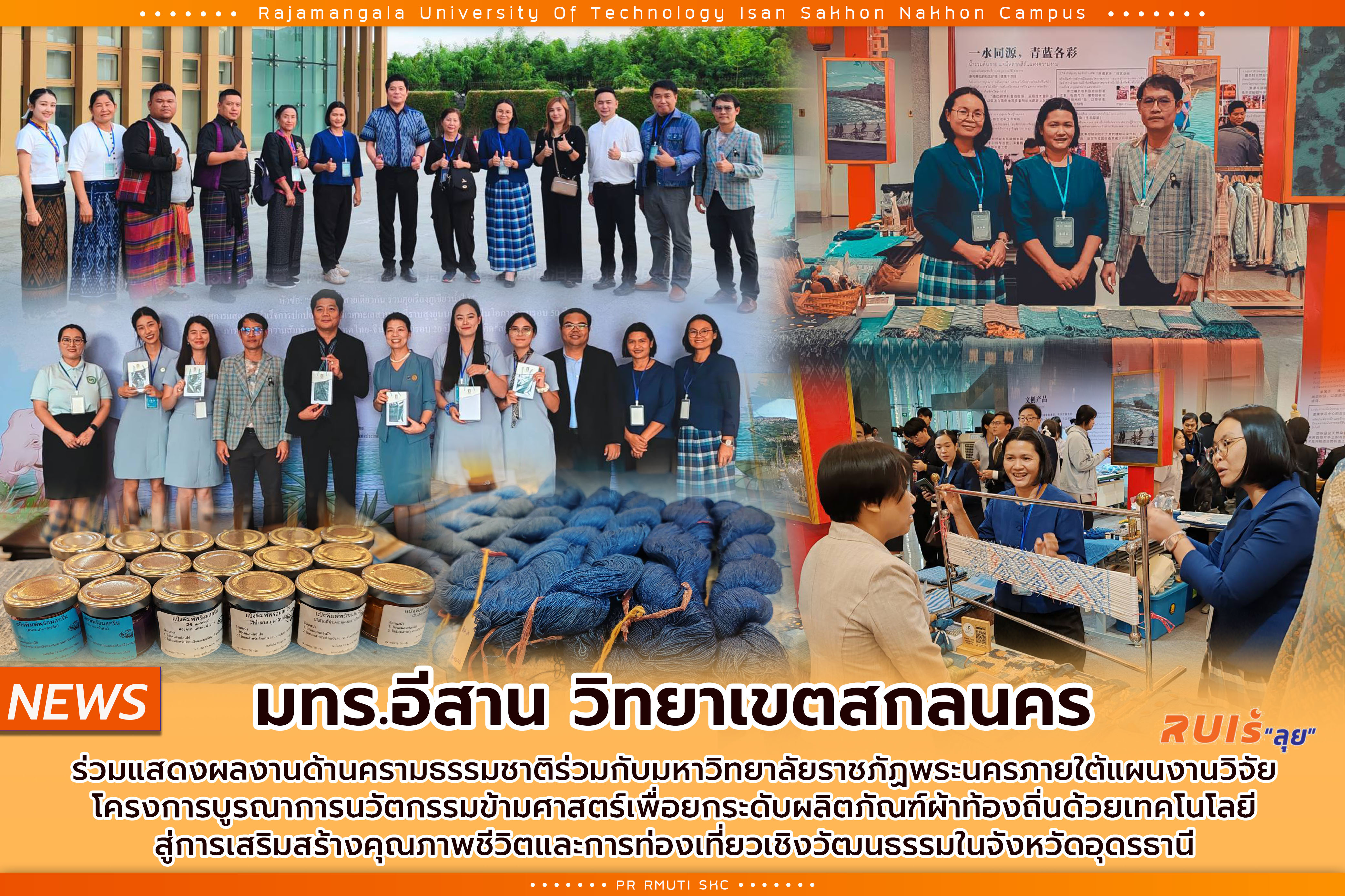 Rajamangala University of Technology Isan, Sakon Nakhon Campus Participate in the exhibition of natural indigo work with Phranakhon Rajabhat University under the research plan of the Integrated Innovation Project across sciences to upgrade local fabric products with technology to enhance the quality of life and cultural tourism in Udon Thani Province. With Associate Professor Dr. Anantakul Intharaphadung, program director and person responsible for Thai-Chinese cultural exchange activities that include exchanging products from China and textile products from the northeastern region, participating in the exhibition. In this regard, Ajarn Manit Sanok, Ajarn Dr. Wasana Khalathita and Ms. Kulawadee Rattana, owners of Sippakram Shop, representatives of indigo entrepreneurs. The work of designing patterns using artificial intelligence (AI) technology has been combined with the use of technology for producing natural indigo dyed fabric. Combined with the innovation of paints or screens made from waste materials from the natural dyeing process. and natural indigo dyed fabric products join the exhibition to publicize the work of Sakon Nakhon natural indigo. Between 24-25 November 2025 at the China Cultural Center, Huai Khwang District, Bangkok.