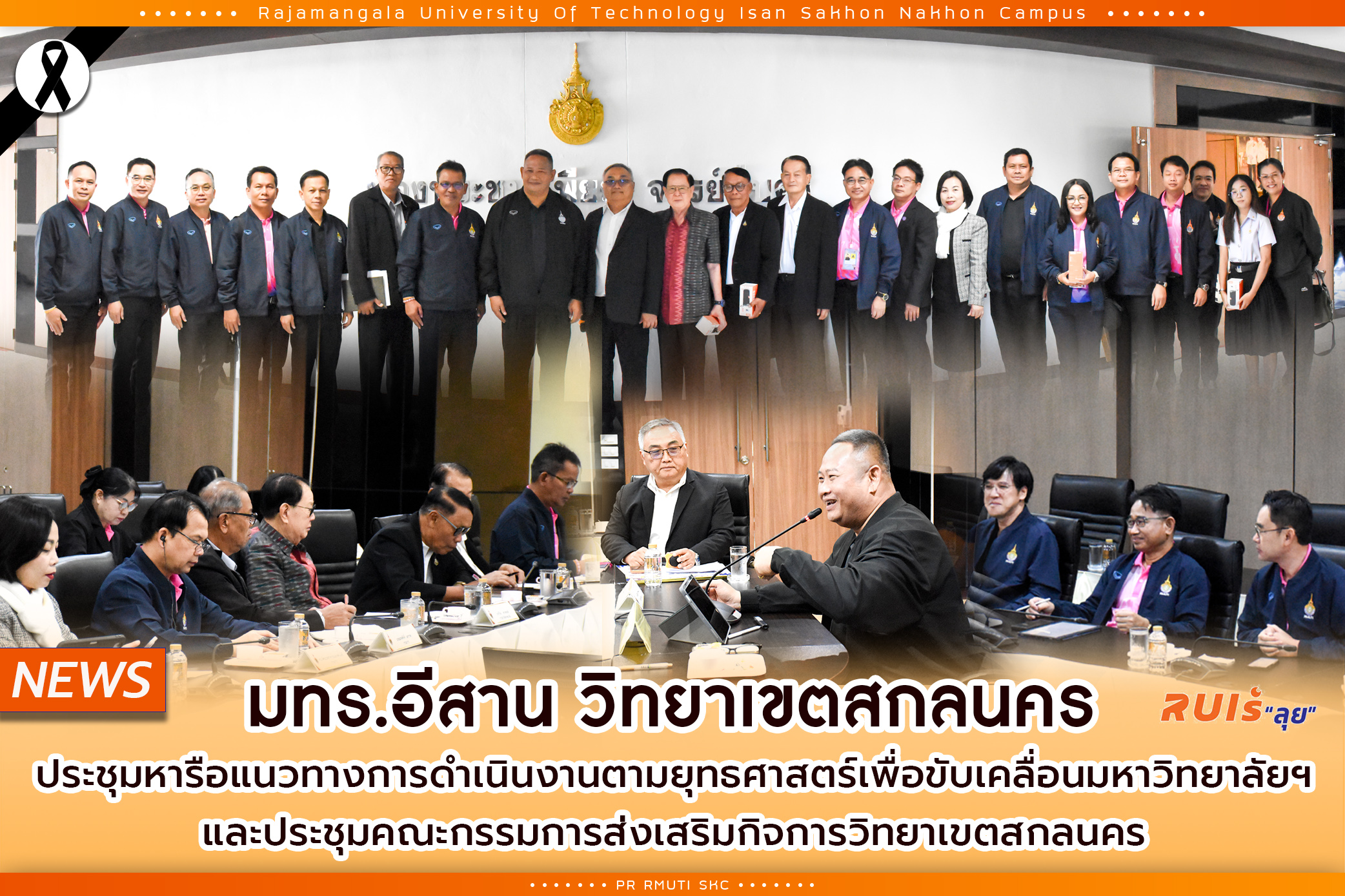 On December 16, 2025, Rajamangala University of Technology Isan, Sakon Nakhon Campus, led by Assistant Professor Dr. Chaweng Saraklong, Vice President of Sakon Nakhon Campus, joined in welcoming Associate Professor Dr. Kosit Sriputhon, President of Rajamangala University of Technology Isan, executive team, and officials, Nakhon Ratchasima, Khon Kaen Campus. and Surin campus In the meeting to discuss guidelines for implementing the strategy to drive Rajamangala University of Technology Isan Toward sustainable excellence And there was a meeting of the Sakon Nakhon Campus Business Promotion Committee, led by Dr. Paichit Kultangwattana, Chairman of the Board. along with qualified directors Attending this meeting to promote, support, provide advice and suggestions to the campus. Develop campus operations guidelines at Phianchan Suebsri meeting room. Academic Building, Rajamangala University of Technology Isan, Sakon Nakhon Campus