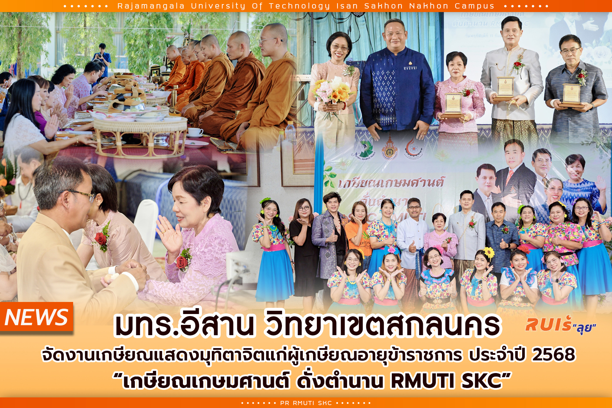Date: 11 September 2025, Rajamangala University of Technology Isan, Sakon Nakhon Campus Held a retirement event to show his devotion to personnel retiring in 2025. Within the event, there was a project to enhance the quality of life for educational personnel. To honor and promote the morale of those who retire this time. By being honored by Associate Professor Dr. Kosit Sriputhon, President of Rajamangala University of Technology Isan presided over the ceremony along with Assistant Professor Dr. Chaweng Saraklong, Vice President of Sakon Nakhon Campus. Assistant Professor Dr. Pichet Wechawithan, Dean of the Faculty of Natural Resources Assistant Professor Dr. Suriya Kaewasa, Dean of the Faculty of Industry and Technology Including administrators, faculty and personnel, many attended the event. To join in expressing gratitude and showing kindness to those who retired this year. In 2025, there are 5 people who retired, including 1. Assistant Professor Amporn Phusrithan 2. Assistant Professor Dr. Teera Phiwngen 3. Assistant Professor Dr. Nipaporn Amassa 4. Assistant Professor Wiwat Sriwicha 5. Mrs. Maneechan Huadprom. In the morning, there was a merit-making ceremony by offering alms and offering food to 9 monks at Multi-purpose pavilion, Pichet Wechawithan. In the evening there is a Bai Sri Su Kwan ceremony. Give souvenirs Show videos of the university. and various performances for retired government officials It is a warm atmosphere filled with love and good wishes from all the attendees. To express gratitude to those with knowledge, ability and experience who have dedicated themselves to the university throughout their careers. This is also to strengthen morale and power to create benefits for society in the future at the Phu Som Hong conference room. Faculty of Natural Resources, Rajamangala University of Technology Isan, Sakon Nakhon Campus